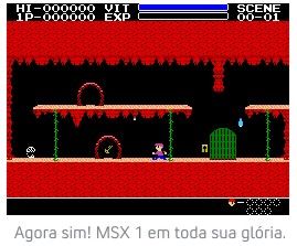GRÁFICOS: Muito bem feito para um jogo de MSX 1, mas fica um pouco atrás com relação aos jogos para Megaram 4/5