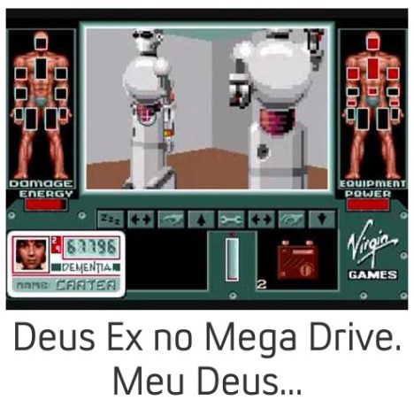 Mas o game apresenta elementos de stealth e espionagem muito interessantes – você é um agente infiltrado numa empresa suspeita de desenvolver robôs para uso ilegal. A partir desta premissa, o gameplay ganhou as características que o tornam similares com Deus Ex, como citado – só que estamos falando de um game de 1990. Dificílimo e desafiador, muito por conta do “painful gameplay” (é o título de um vídeo que achei para demonstrar para vocês, melhor impossível). Na época, terminei várias vezes, locava para o final de semana e jogava todinho. Ah, como tínhamos tempo livre e poucos jogos naquela época…