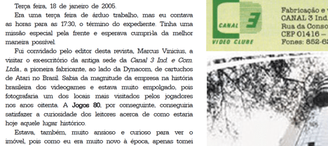 Oferecendo conteúdo 100% original, a Jogos 80 é um projeto que nós, retrogamers brazucas, somos privilegiados em ter disponível por aqui. Não somente revisitando jogos antigos, os caras tentam resgatar informações históricas – uma matéria favorita está presente na segunda edição, onde o Marcus fez uma visita aventureira ao local onde ficava o escritório da Canal 3, pioneira fabricante de cartuchos Atari no Brasil.