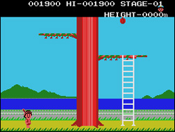 O nome já demonstra que aqui a árvore tem papel importante. Nesse game, você está na pele de um pequeno índio que deve escalar a Árvore Mágica, uma árvore tão alta que passa por nuvens. Entre os desafios (além do fato de escalar) estão corujas e raios (que saem de nuvens com caras de mal). Esse jogo me garantiu horas de diversão. Outra coisa que não posso deixar de mencionar é que a música do gameplay do Magical Tree está na lista das trilhas sonoras que até hoje sei assobiar (mentalmente, claro. Não fico por aí assobiando game musics assim sem cobrar nada). Se você não conheceu Magical Tree ou quer relembrar o jogo, aconselho fortemente ler esta resenha do nosso prezado amigo Gagá. Está tudo lá e não preciso dizer mais nada. Até os comentários da galera são bons. Mas termina de ler o post aqui antes, né?